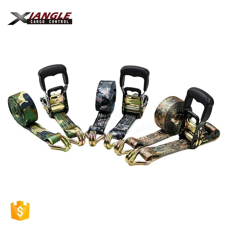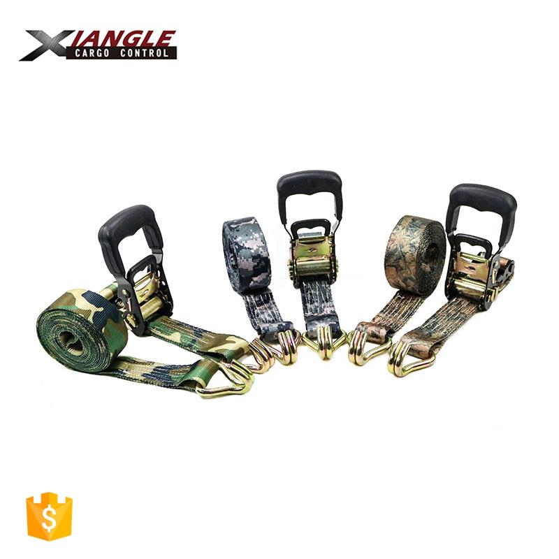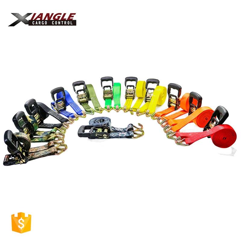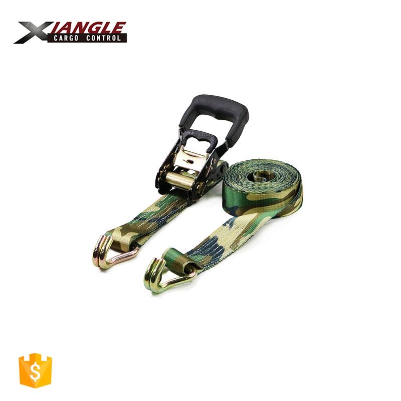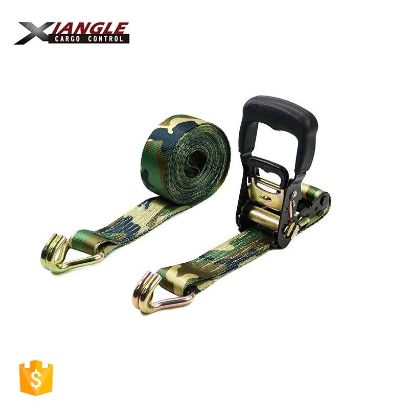 Ratchet tie down with rubber handle and double J hooks